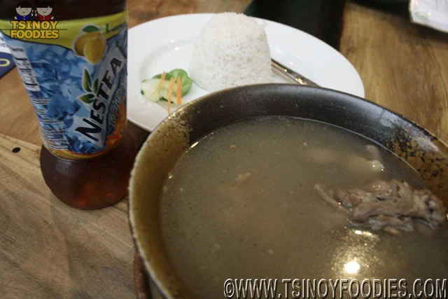 We, Tsinoy Foodies, were quite undecided on which to order so we asked the waiter for his suggestion. He told us that if we want to taste the authentic dish specialty of the Cordilleras then we should order the Pinikpikan. He quickly added that the Pinikpikan is already good for two and comes with rice and our preferred drink. It sounded pretty convincing so we took the bait and ordered the Pinikpikan.
