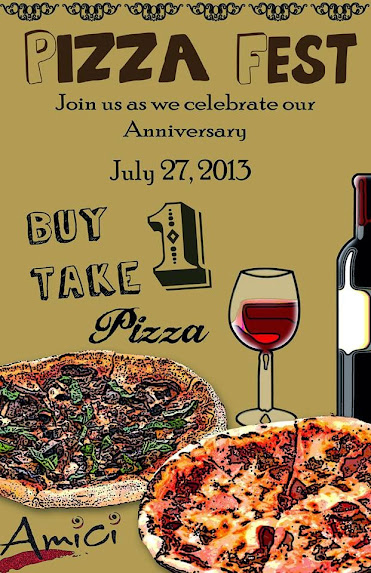 Join Amici's Anniversary Pizza Fest by availing their Buy 1 Take 1 Promo on July 27, 2013. Check their fan page for more details.