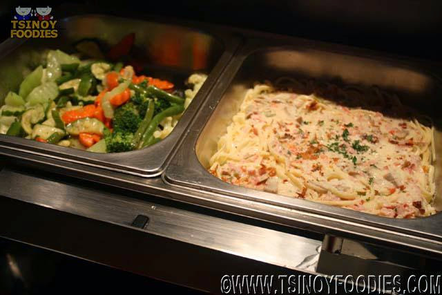 | Steamed Vegetables and Lenguini Carbonara |