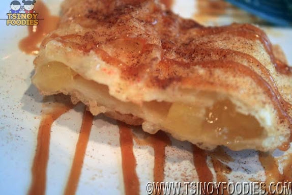 The Apple Caramel Crispy Crepe is drizzled with Cinnamon and caramel syrup.