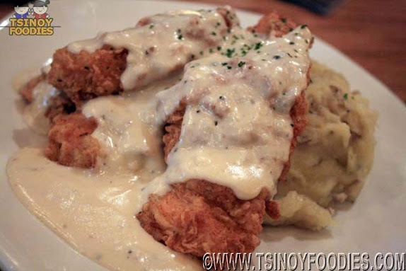 Chicken Fried Chicken are crispy golden fried chicken tenders topped with classic white gravy and served with mashed potato. This is a quite a bargain deal for such a satisfactory dish!