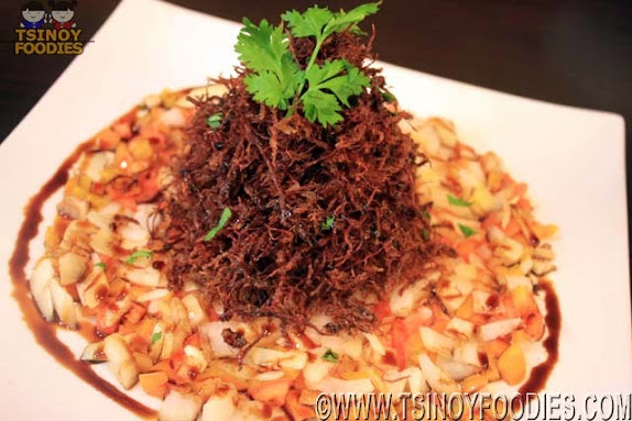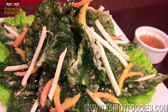 The Krispy Kangkong Salad is a fun, crunchy and healthy salad to feast on even for kids and non-veggie lovers.  It has huge battered kangkong leaves, singkamas and tomatoes.  The greasiness is totally eliminated when eaten with their special onions and tomatoes house dressing that's sweet and tangy.