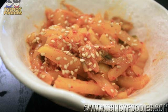 The Kimutaku is a hybrid between kimchi and picked raddished topped with sesame seeds.