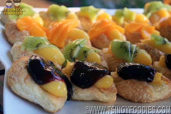 raspberry toppings, kiwi and peach Danish Puff and bitter-sweet Brownies