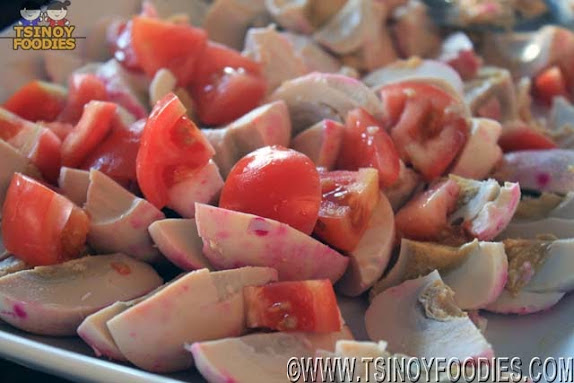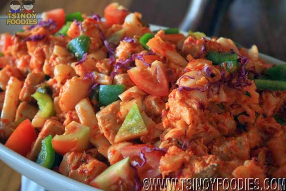 Spicy Seafood Salad has tomatoes, bell peppers and cuttle fish. It reminded me of