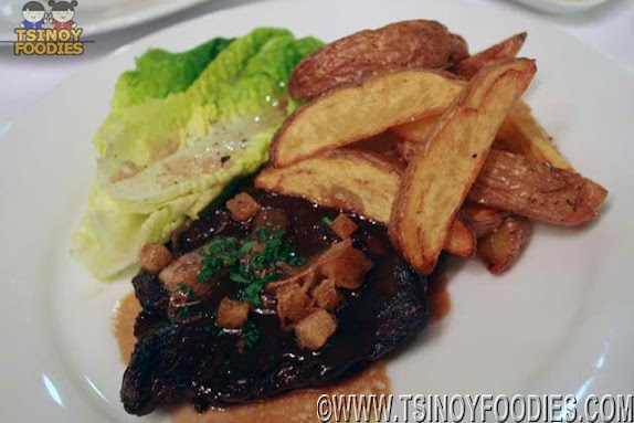 The Onglet Poele is one of the best pan-seared US hanging beef tender I've tried! We had it cooked medium and it was cooked precisely so. It was also served with thick potato fries and romaine salad.