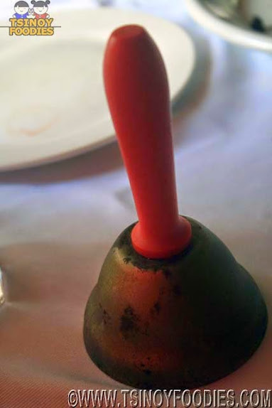On top of each white linen covered table is a bell which you can ring to call their servers. We were impressed that some of their servers can speak Italian.