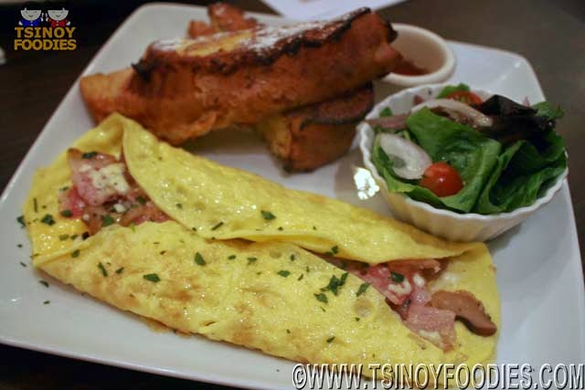 The Mushroom and Bacon Omelette is for the bacon fanatics. It has applewood smoked bacon, shiitake mushrooms, and creamy mozzarella cheese. Choose French Toast for the sides. It's really good!
