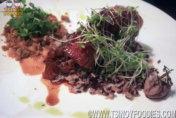 The Crispy Pork Belly has apple and raisin glaze topped with alfalfa on a bed off mountain rice.  It is also served with poached apple and chicken liver parfait on the side.  This Crispy Pork Belly is a must try!  It may not look like it but it's a fulfilling meal too.