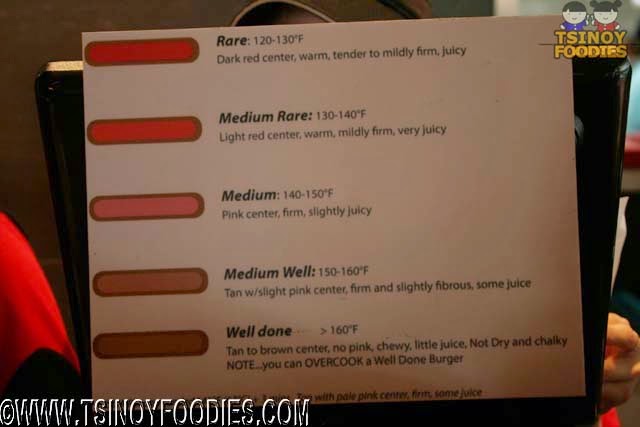 When you order your burgers, you can choose how it is cooked. I'm told their default is the "Medium Well". You can also choose the buns: Potato, Wheat or Lettuce Wrap. The default is the Potato buns.