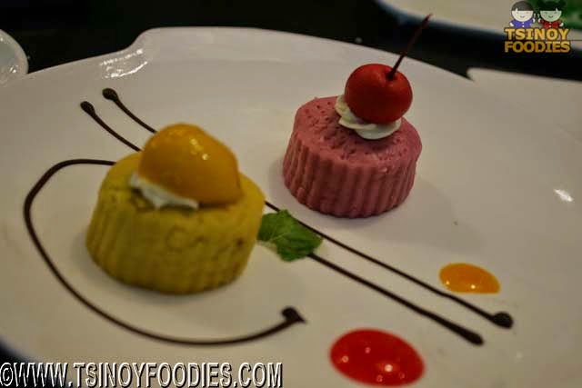 | Beef Bourguignon Mooncake with Choron Sauce and Minced Goat Cheese Mooncake with Mango Coulis |