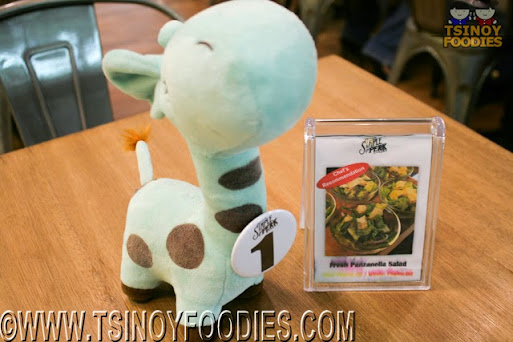 While looking around, I left this cute giraffe doll with my table number on a table.