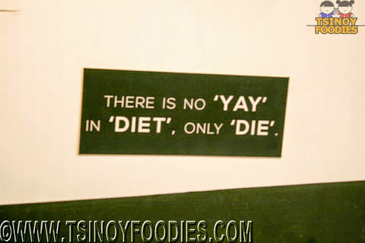 If you peek through, you'll probably think oh it's just a small hole-in-wall diner with one bar and stools. You can also see that they make their burger patty from scratch which is cool. You'd also be amused over their wall spiced with witty humor like her...