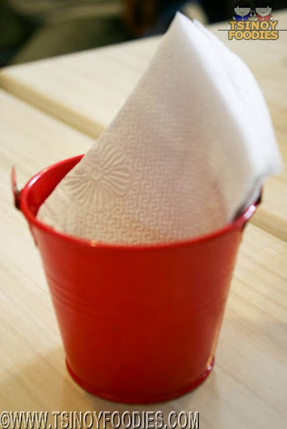 Each table has a pail for the napkins and...