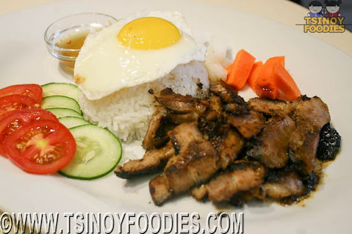 The Grilled Pork Steak is a plateful of sweet marinated pork cuts which is great when dipped in the vinegar-based sauce. It is also served with a cup of rice, fried egg, pickled radish and carrots and fresh slices of tomatoes and cucumber.