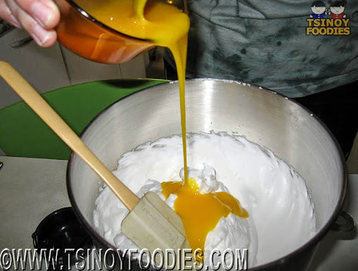 Step 5: Add the whipped cream to the mixture being cooled.