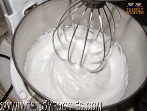 Step 5: After all the sugar had gone in, increase the speed further to high until the Egg Whites starts forming stiff peaks and appearing shiny.