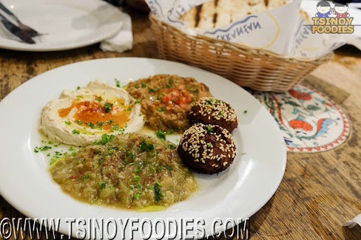 | Sampler Plate of 3: Labneh, Hummus and Falafel with Pita Reg (275 php) |