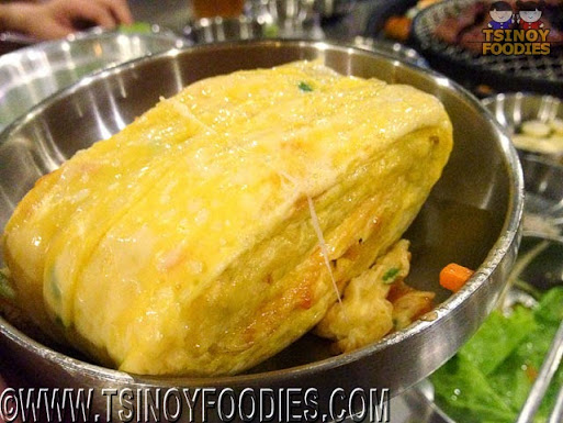As soon as we ordered, we were served their complimentary brown rice tea. Then, our server sets our charcoal griller and fills up the sides with red bell peppers, onions, sweet corn with mozzarella cheese and raw egg. It's the first time we've encountered a griller designed like that. Later on, as the meats are grilled, the oil will spill on the sides adding flavor to them.