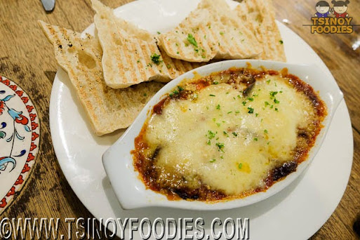 | Eggplant Parmigiana with Whole Wheat Pita (295 php + 30 php) |