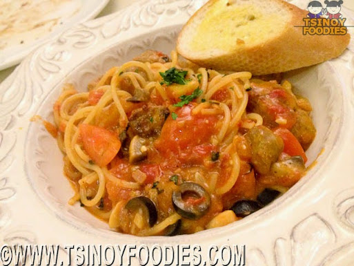 The Spaghetti All' Arrabiata Calebrese is supposed to be penne on the menu but we requested to have it substituted to spaghetti. It has Italian sausage, black olives, mushrooms in spicy and tangy vodka tomato sauce. I found the blending of flavors quite balanced so I enjoyed this.