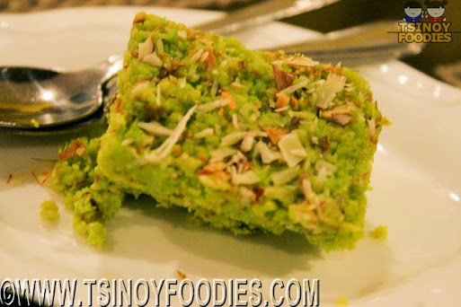 The Kuffi is Indian ice cream. When I was told by the staff that they use carabao milk, I was expecting the Kuffi to be like Arce Dairy ice cream. But it's really different. This one is so thick that it's more of a really sweet, rough and dense like pastillas than an ice cream. But, it is really cool. And, it has rose syrup on it and pistachio bits.