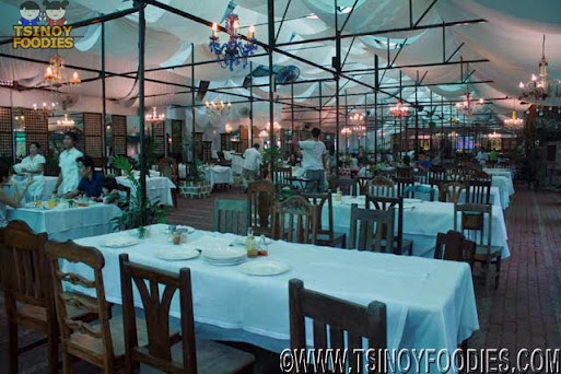 The place looked like one that would be perfect for a wedding reception. It had chandeliers and draped white linen cloth above. Tables were all covered in white linen cloth matched with wooden chairs. The windows reminded me of the one we have in our ancestral home in Ilocos. And, the floors were made of red bricks. It was a bit hot but air-coolers are stationed by the side.