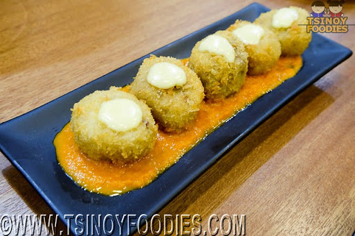 | Fried Mushroom Risotto Balls with Creamy Tomato Puree (255 php) |