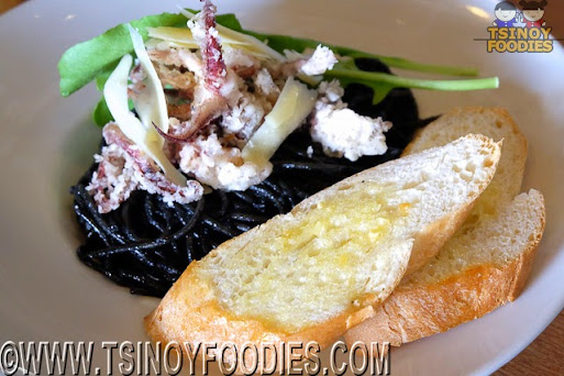 ♥ Squid Ink Spaghetti with Cherry Tomatoes, Parmesan Shaves, Arugula and Fried Calamari (520 php/Sharing)