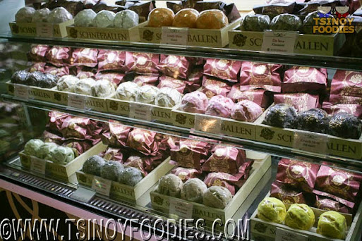 We were totally clueless what language Schneeballen. But, the red lettering "BALL" and the colorful ball displays hinted to us that it was some kind of ball-shaped food.