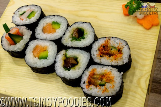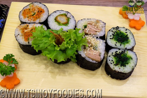 | California (100 php), Panko Prawn (150 php), Tuna Mayo and Avocado (100 php) and Seaweed Salad (100 php) |