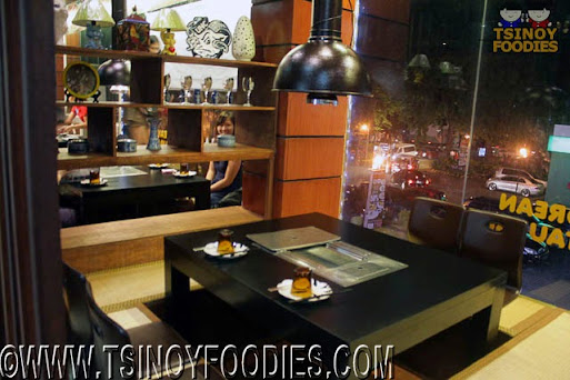 The interiors were really nice. The dining areas each had a square table equipped with gas griller, pillows for seats and display shelves that serve as dividers. Their was a background music too but not Korean as I would have expect.