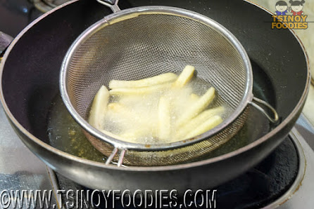 Step 1: Heat the Canola Oil in the deep frying pan with medium-heat. The amount should be enough for you to dip the frying basket.