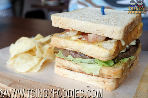 The Brunch Monster Burger is a burger that is sure to satisfy your hunger. It's a 3-layeres sandwich: (1) bacon, (2) 100% Angus Beef Patty and (3) Scrambled Egg. The bread is buttered too for additional flavor.