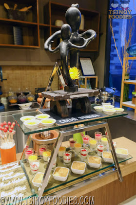 There is a Soft Served Ice Cream Machine, Chocolate Fondue Station, Snow Cone Station, Halo-Halo Station and Cakes Station.