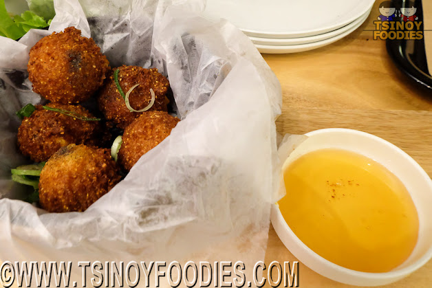 The Hush Puppies are golden fried corn bread in ball-shape dusted with black pepper and topped with scallions and served with the miso butter maple syrup. When I first brought this, it didn't make a tempting appeal compared to the other orders. When we tried it alone, it was really good. But, dipping it in the miso butter maple syrup makes it even better as it over rides the oiliness.