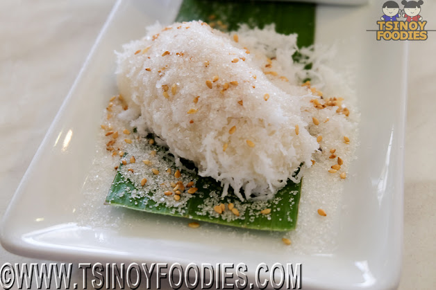 The Palitaw is poached rice patties with grated coconut and toasted sesame seeds. This is my type of chewy snack.