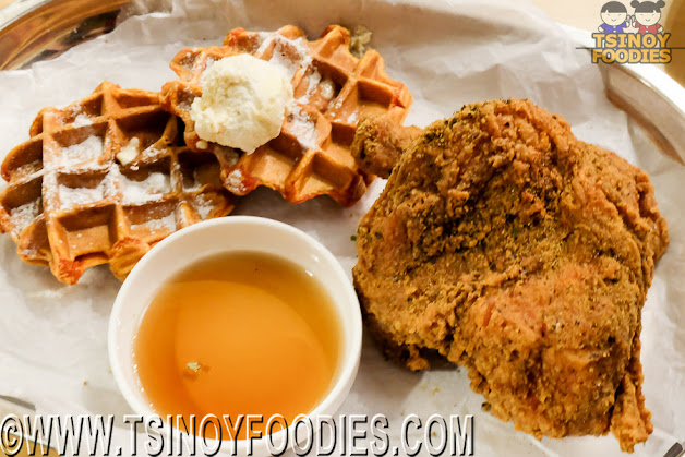 The Waffle Plate comes with 2 pieces of fried chicken, 2 pieces of sweet potato and miso butter maple syrup.