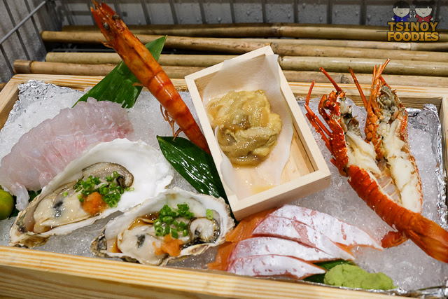 | Grouper Sashimi (350 php/5 pcs), ♥ Uni Sashimi (235 php), ♥ Salmon Sashimi (290 php/5pcs), Prawn and ♥ Rock Lobster |