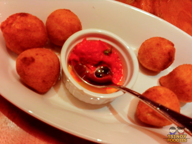 The Coxinha look like croquettes but are not because there's no potato involved. Instead, it has shredded chicken, bell peppers and cream cheese filling. We love this!