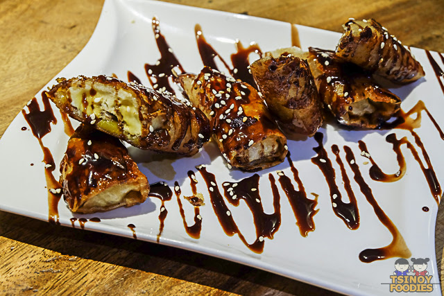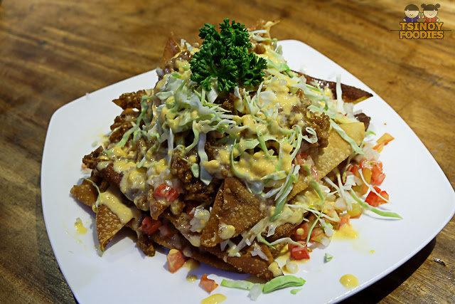 Naimas Nachos is deep fried wanton with the usual nacho grande toppings. This is the perfect bar chow as it doesn't get soggy even after a long period of time.