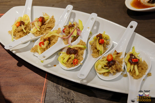 I've always loved Tawilis. Although I love it cooked simply in fried form, I couldn't help but appreciate the Tawilis with Mangga on a Spoon.