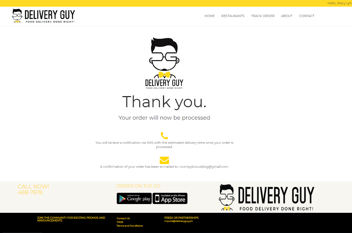 Once you're done with ordering, just wait for the confirmatory email.