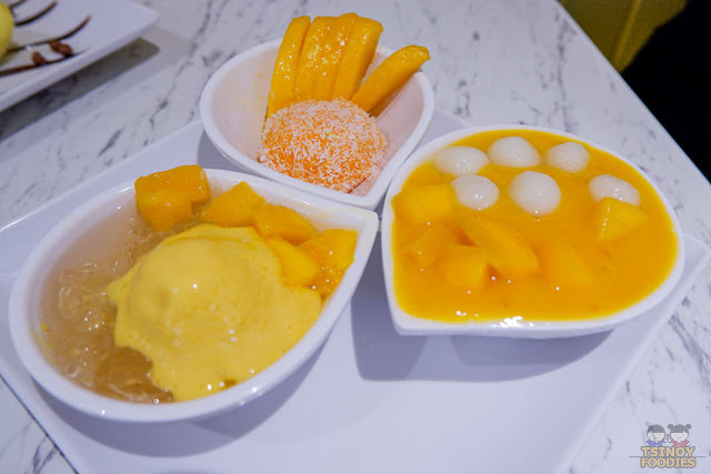 The Mango Romance is Hui Lau Shan's world-famous set because as you can see, it seems like an ideal sampler to order. You get three desserts in one plate: (1) Mango Chewy Ball (2) Mango Crystal Jelly (3) Mango Mochi. All of them are equally good! I noticed the pricing here is cheaper than in Hongkong perhaps because their mangoes are sourced here in the Philippines. Lucky us!!!