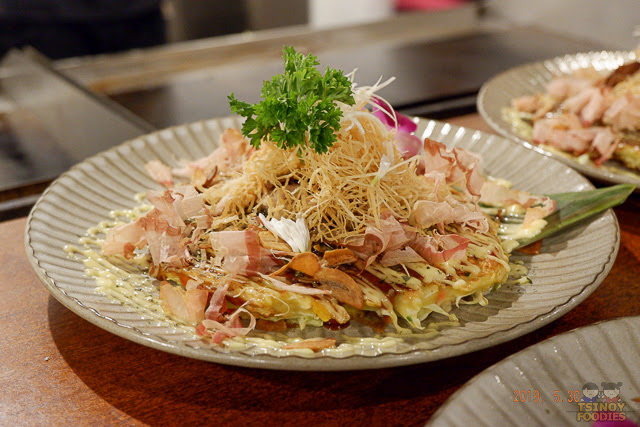 Surely, one of the best Osaka-style Okonomiyaki (お好み焼き) I've had in Manila is Tappan Yaki Kushi No Nobo's Meat DX - with beef, pork and chicken meats. As expected from a brand that has multiple stores in Okinawa.