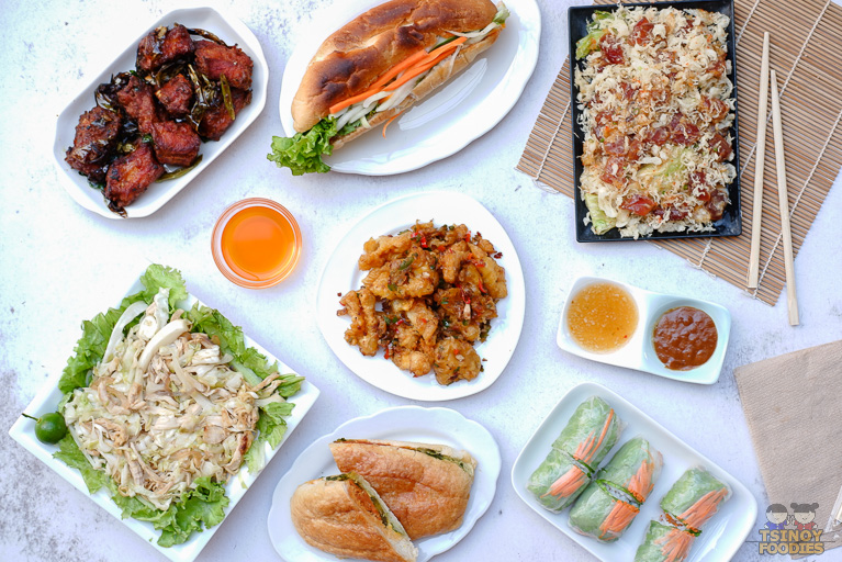 | Mi Xao - Stir Fried Noodles w/ Chicken (195 php), Goi Cuon - Fresh Spring Rolls (188 php) and Banh Mi Ga - Chicken (155 php) |